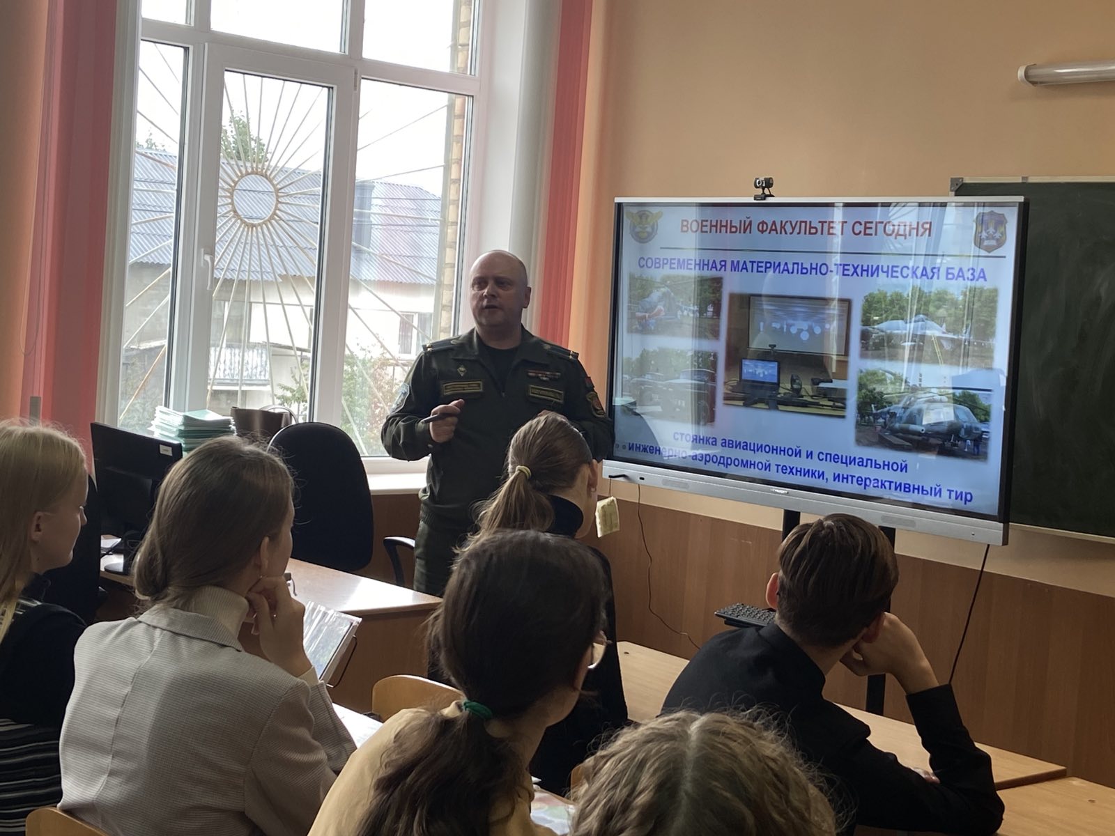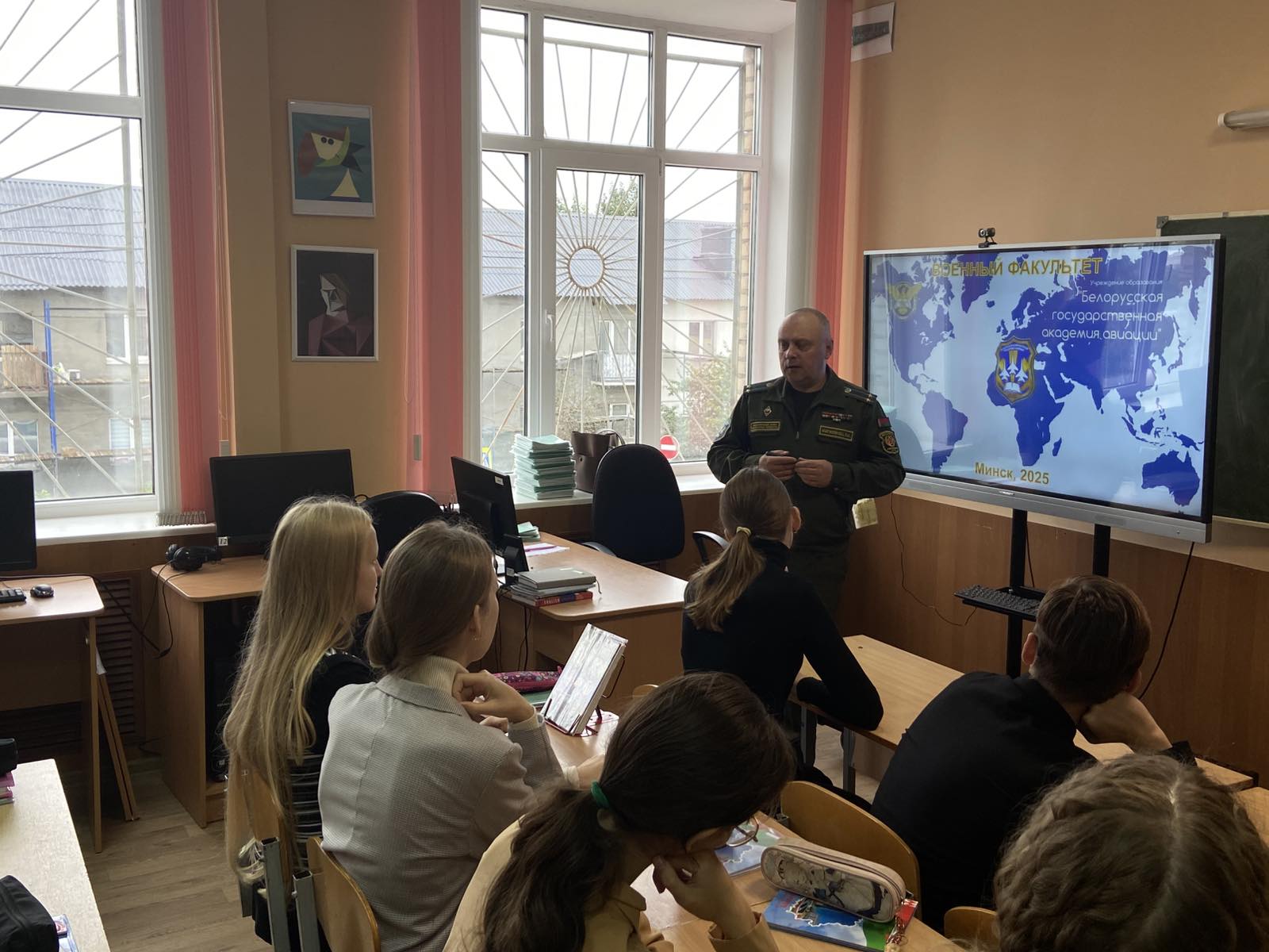 🛩️Доцент кафедры военного факультета УО «БГАА» Могилянец Руслан Иванович провел профориентационную встречу с учащимся выпускных классов ГУО «Средняя школа √3 г.Смолевичи». В ходе мероприятия 10-11-классники познакомились с историческими аспектами развития БГАА, ее современным положением, структурой и материально-технической базой, задействованной в подготовке курсантов. Отдельное внимание было уделено специальностям, по которым будет осуществляться набор во время проведения вступительной кампании нового учебного года, и важным аспектам, связанным с поступлением.✈️