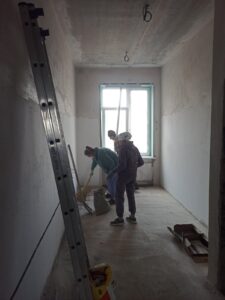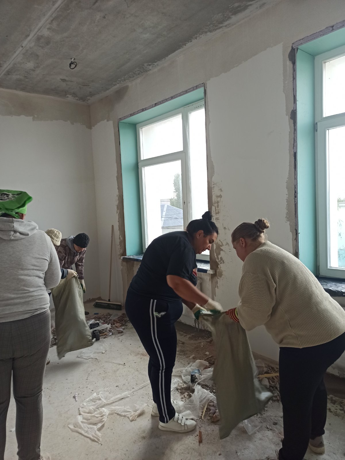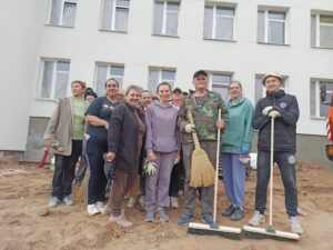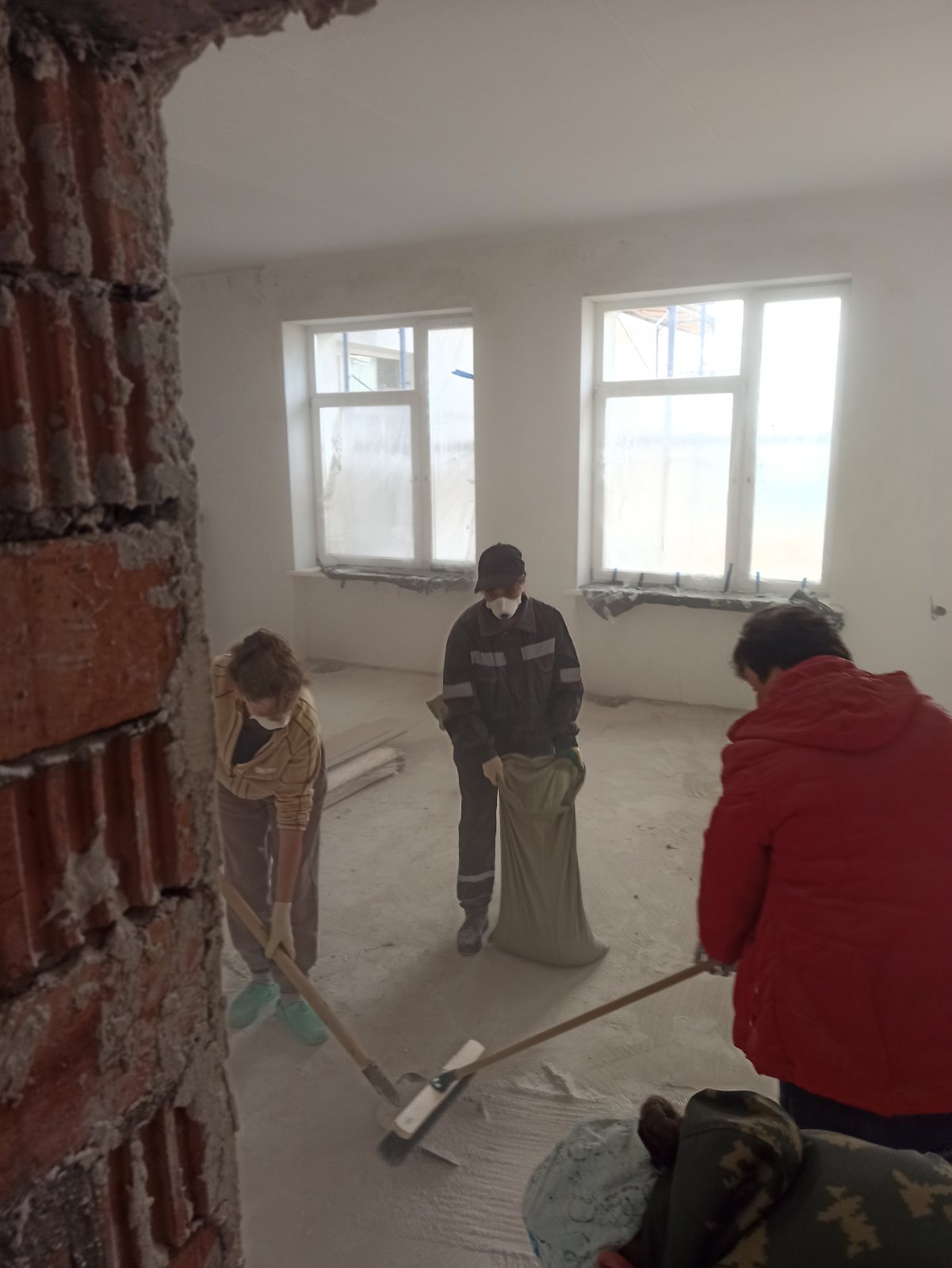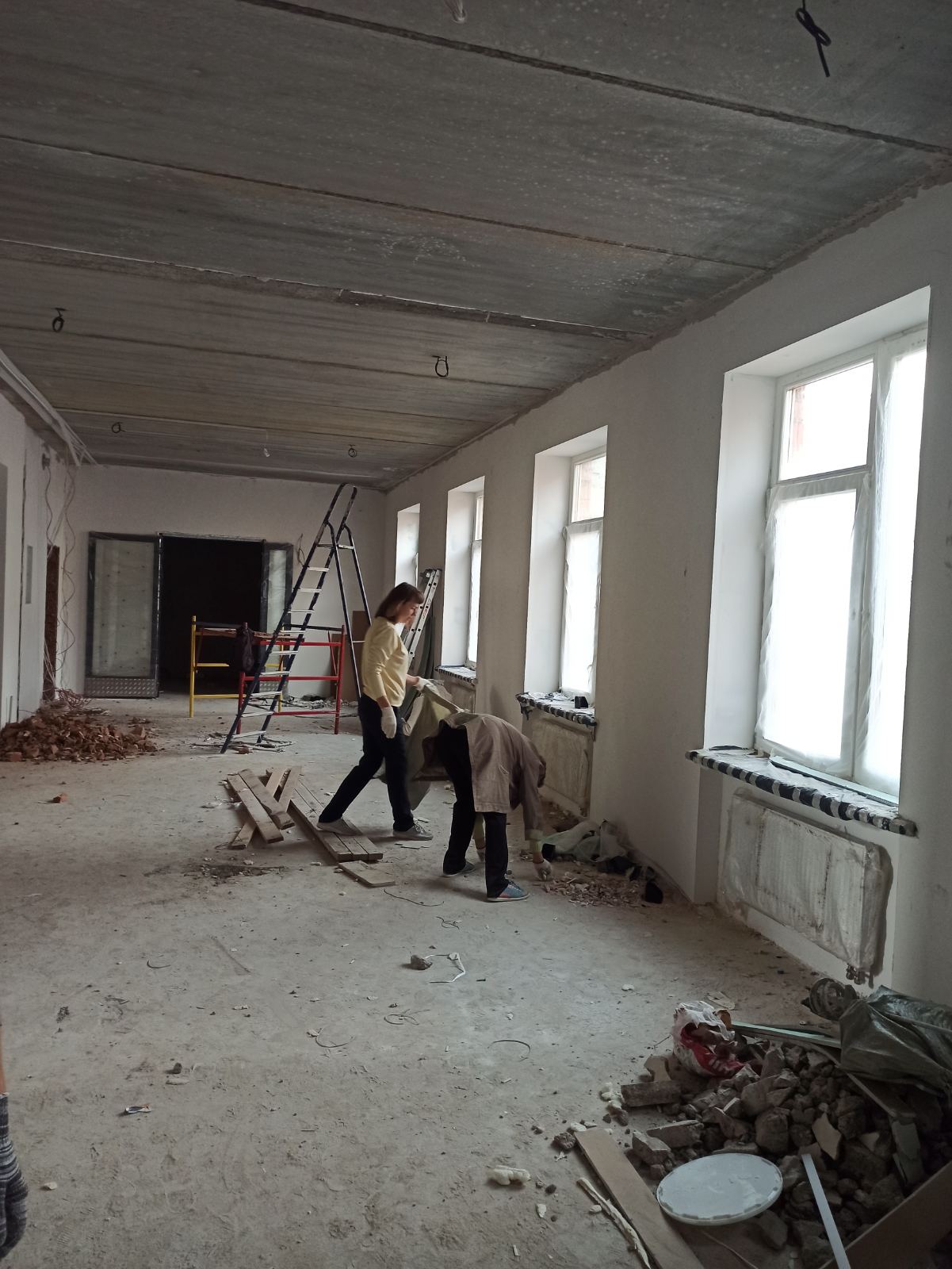 В эту субботу в здании школы работа кипела не только у строителей, но и у тех, кто пришёл поучаствовать в субботнике 🧹