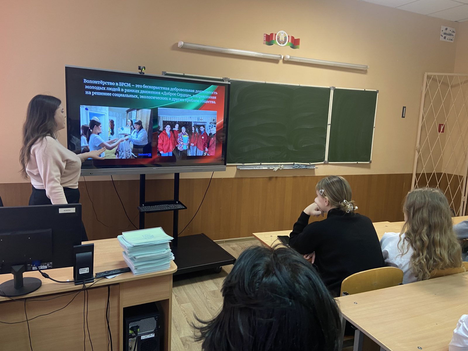 Главный специалист РК ОО «БРСМ» Литвин Кристина Алексеевна встретилась с учащимися ГУО «Средняя школа №3 г. Смолевичи» с агитационной беседой «Что такое БРСМ». ✨