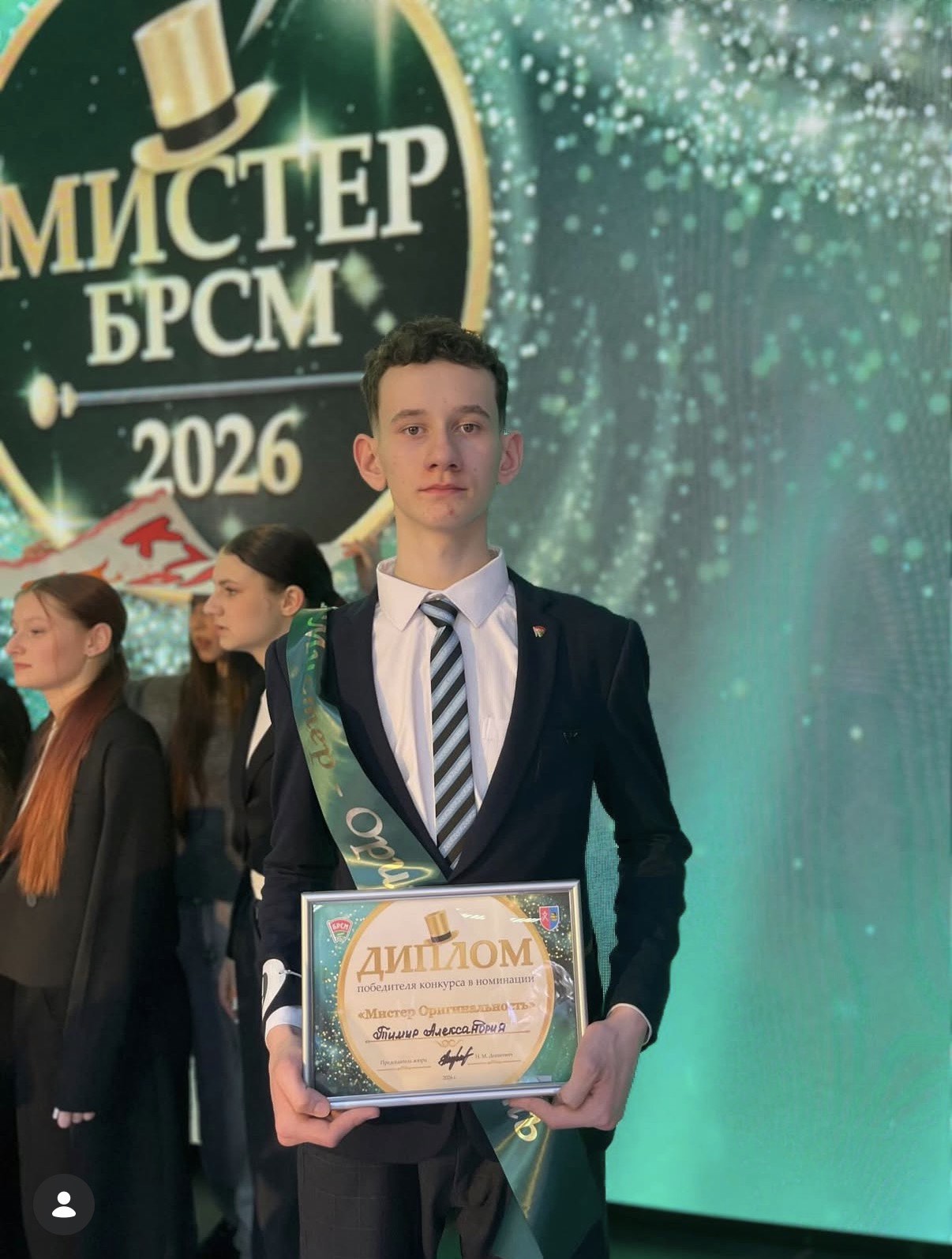 Учащиеся нашей школы приняли участие в районном конкурсе Смолевичского РК ОО «БРСМ» при поддержке Смолевичского районного исполнительного комитета. По итогам состязаний титул «Мистер Оригинальность» завоевал Александрия Тимур, а Никита Клезович получил почетное звание «Мистер Харизма».