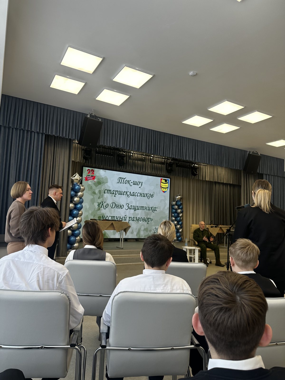 В гимназии имени В.Ф.Купревича состоялось Ток-шоу «Есть вопрос», участие в котором приняла учащаяся нашей школа Зыль Арина. Гостем стал военный комиссар Смолевичского района и г.Жодино Юрий Шерстень. По правилам шоу, ему предстояло успеть рассказать о себе за 1 минуту, ответить на все интересующие ребят вопросы.
