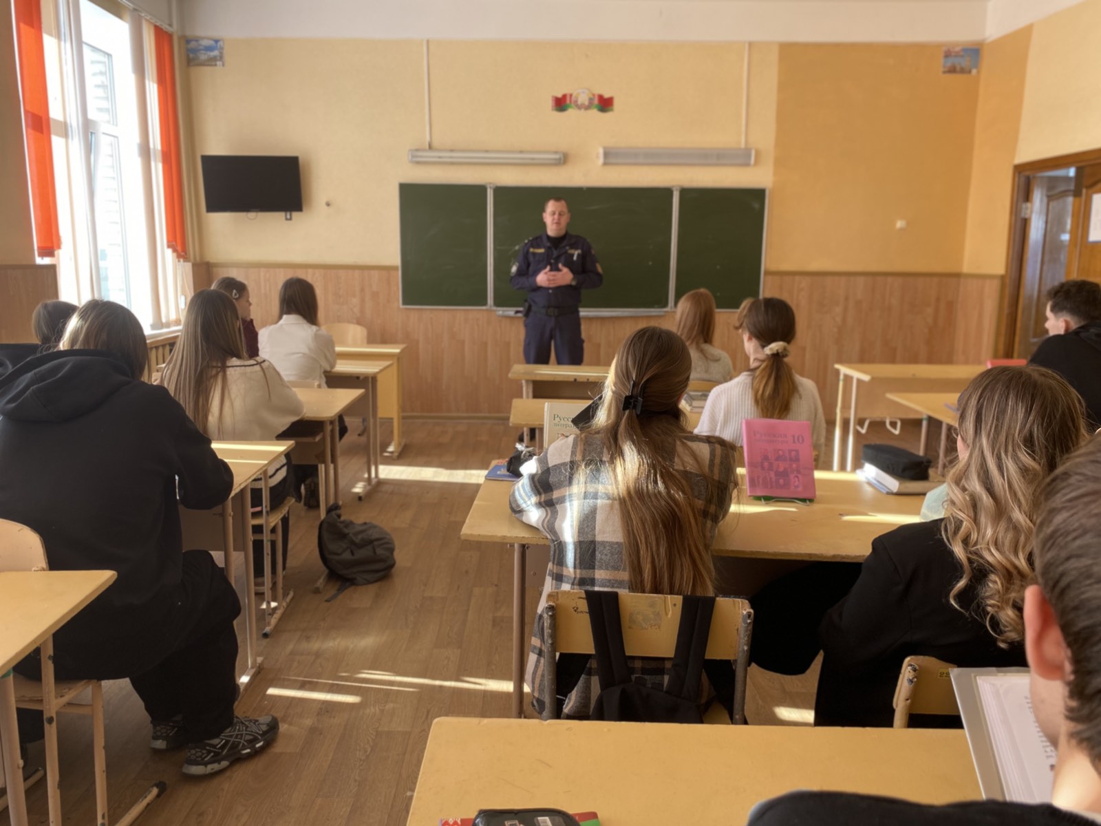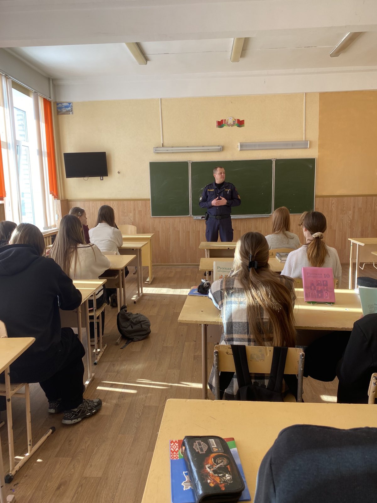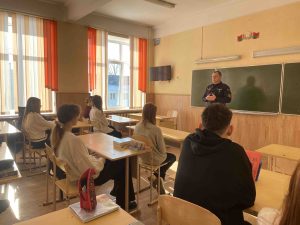 Учащиеся ГУО «Средняя школа №3 г.Смолевичи» встретились с настоящим профессионалом — заместителем командира роты ППСМ МОБ Первомайского РОВД г. Минска майором милиции Сергеем Владимировичем Будько.