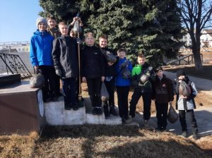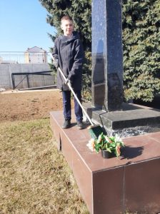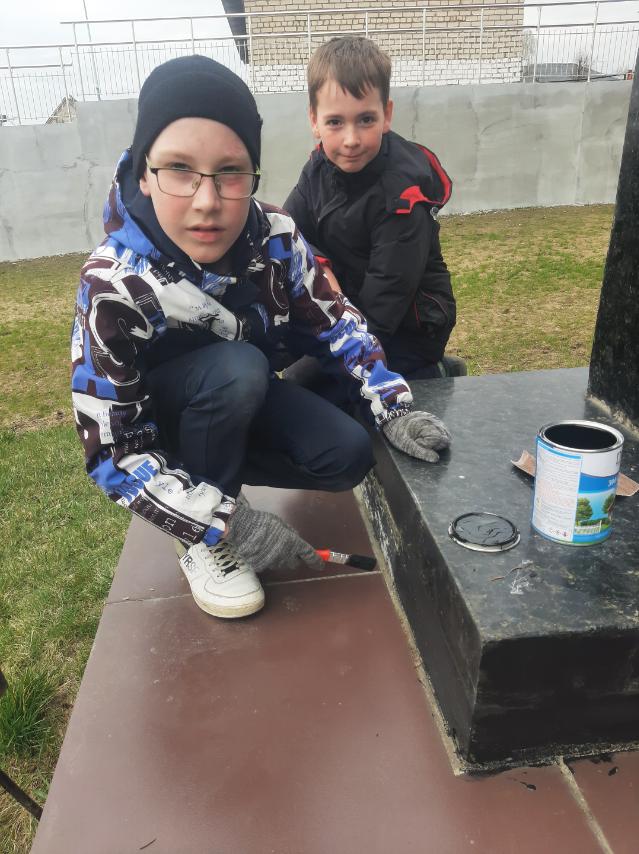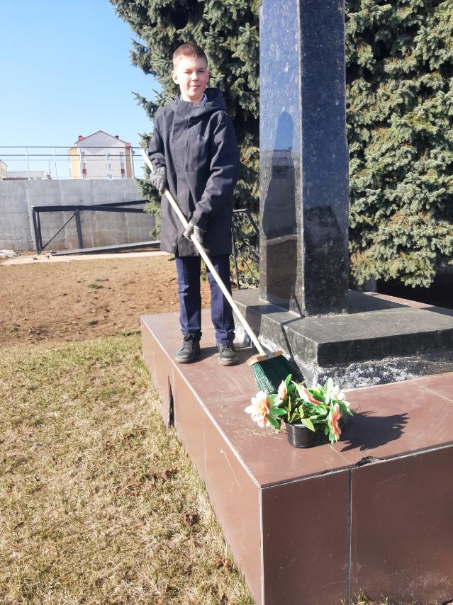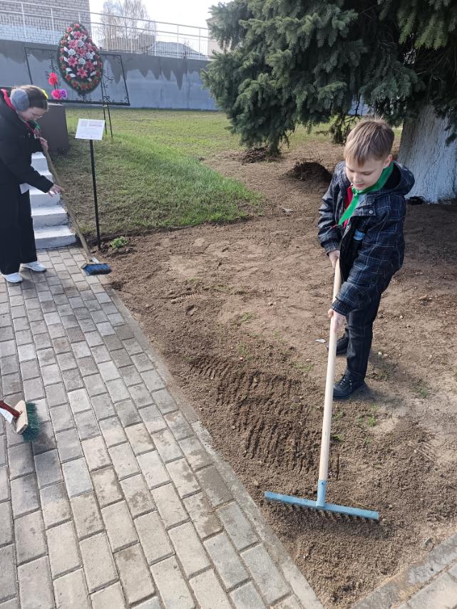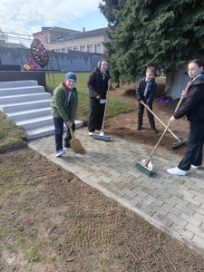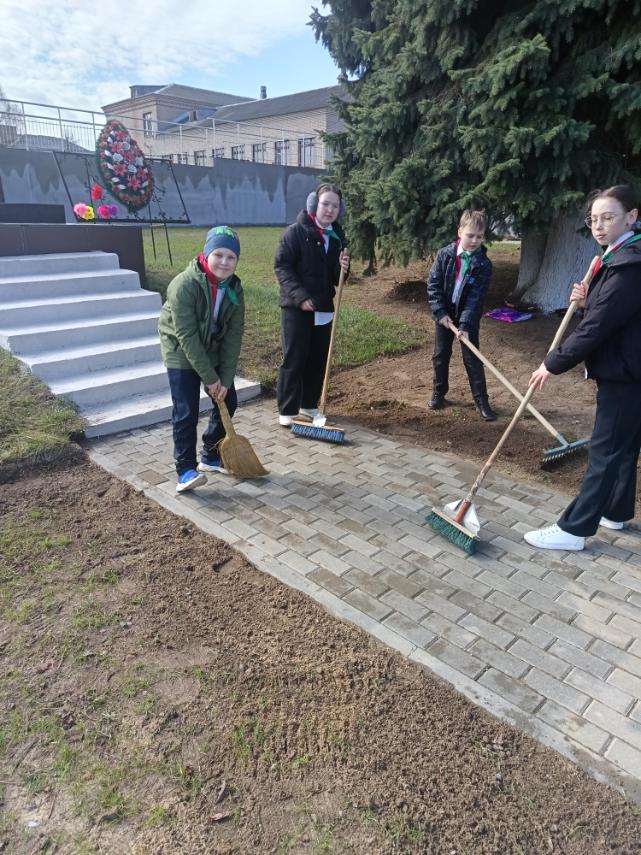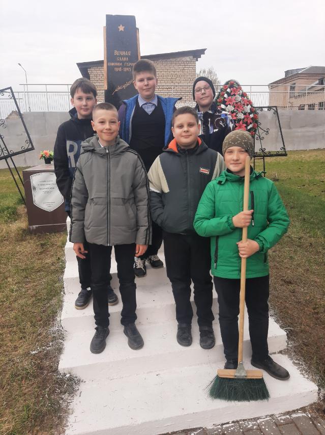 Ребята убрали территорию, подмели дорожки и привели в порядок памятник воинам, погибшим при освобождении Смолевичей в 1944 году.