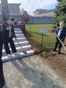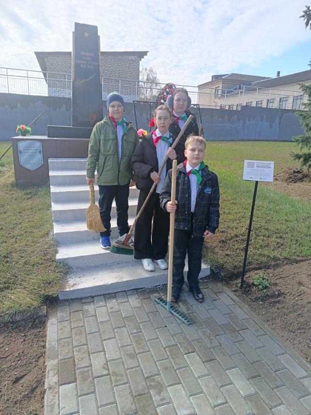 Пионеры школы наводили порядок на братской могиле по адресу ул. 40 лет Победы. 🪦🧣