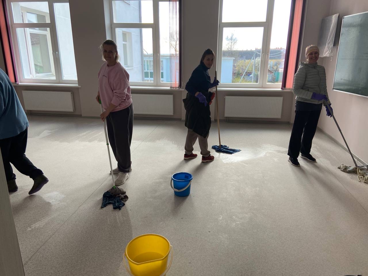 Учителя и технический персонал трудились в здании новой школы: мыли окна, наводили порядок в классах и готовили помещения к открытию. 👩‍🏫🧹